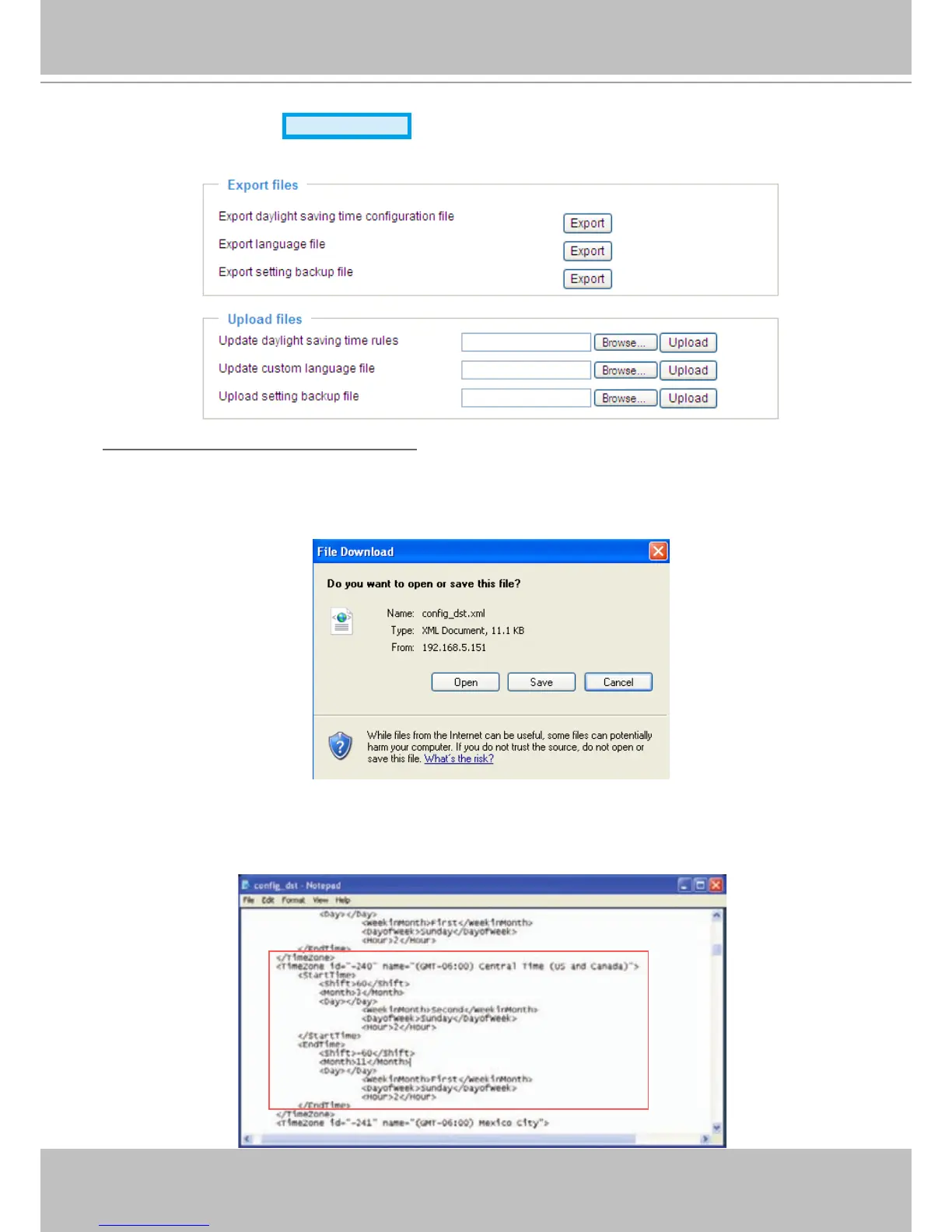Export daylight saving time conguration le: Click to set the start and end time of DST