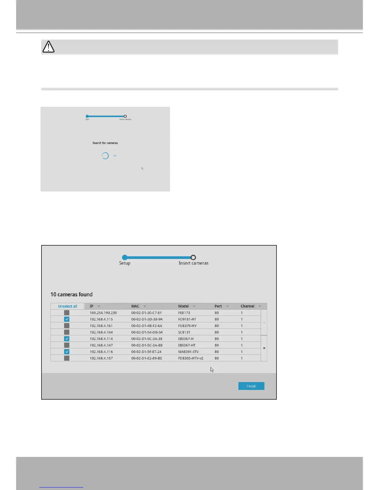 4. All cameras detected on the network will be automatically listed. If necessary, deselect the
