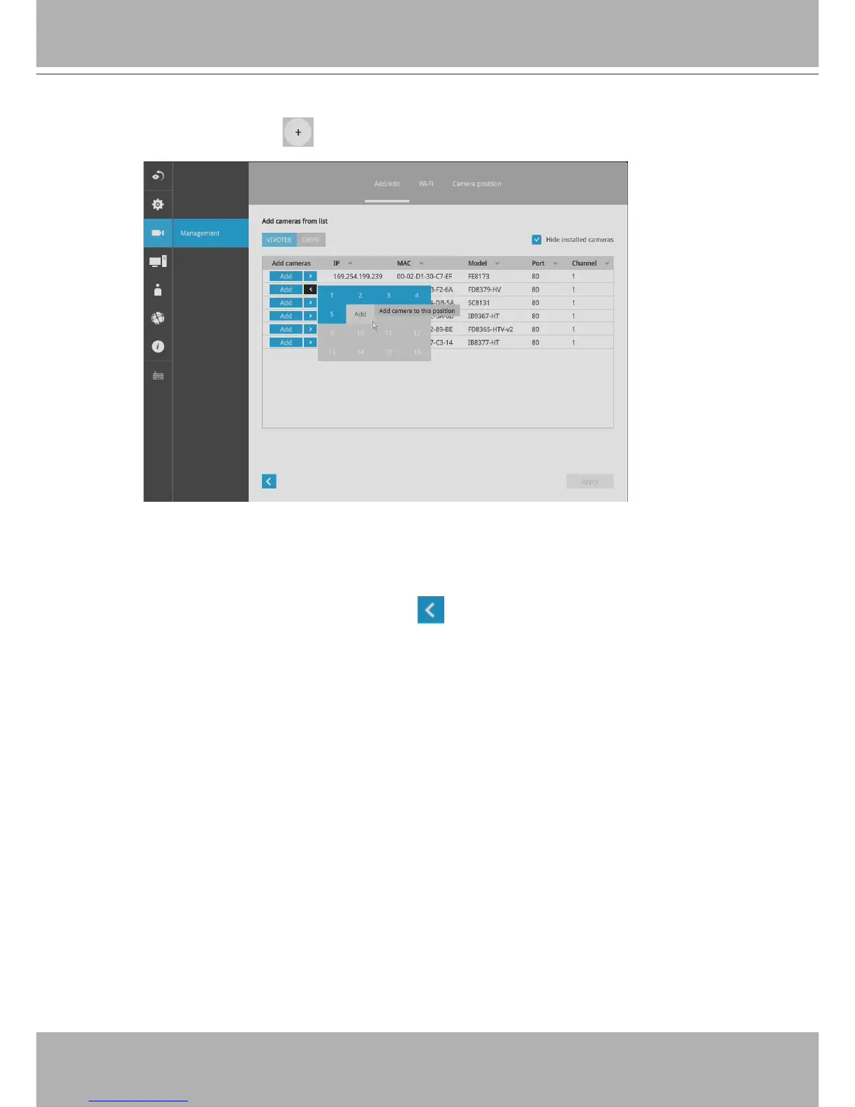 1. Click on the Add button. A list of cameras in the same subnet will appear.