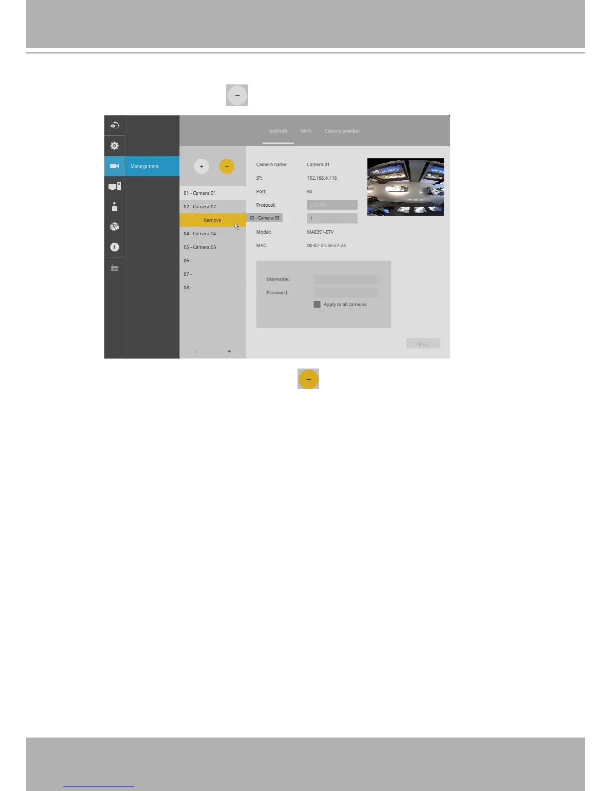 3. Click on the Remove message. The camera should then disappear from the camera