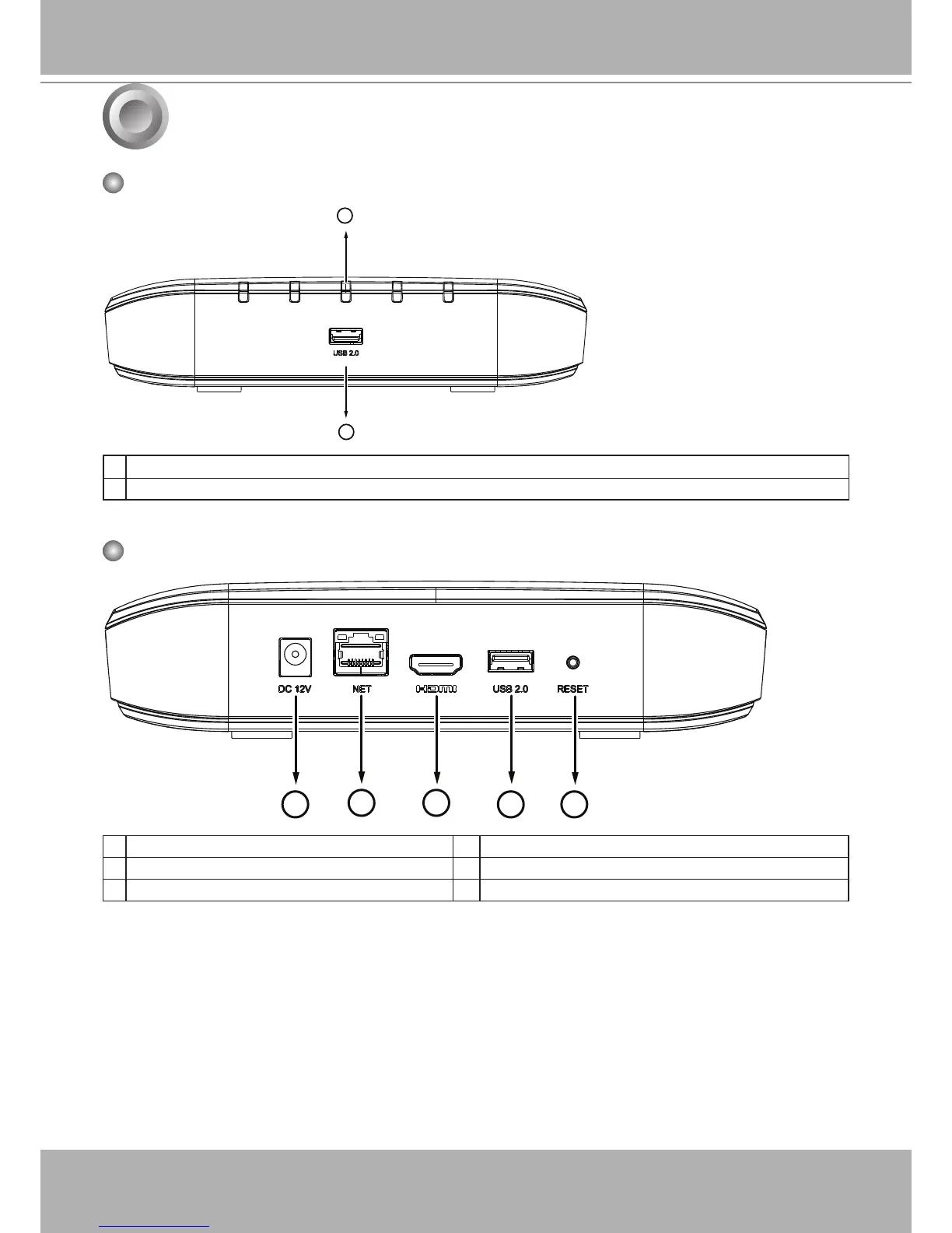 1 Power socket (DC12V, 1.5A) 4 USB port