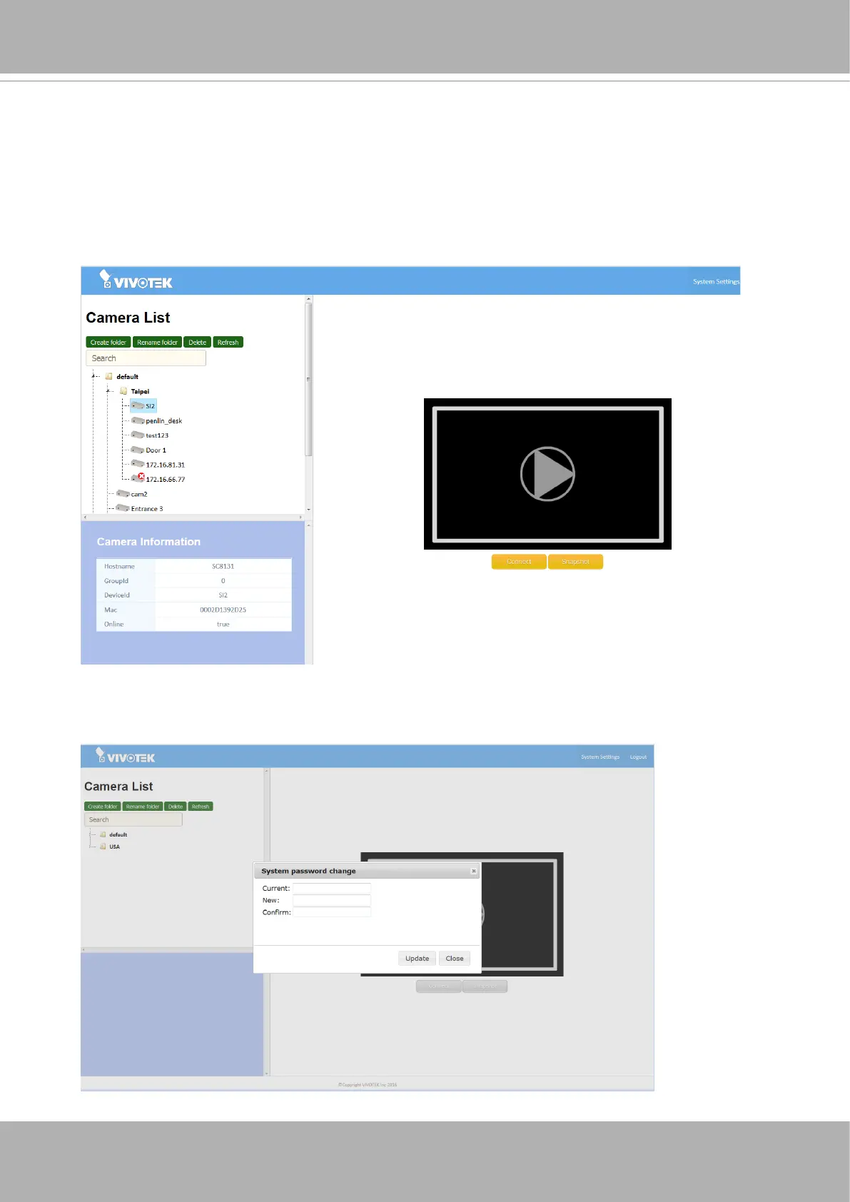 Device ID. When selected, the Playback, Connect and Snapshot buttons will also be