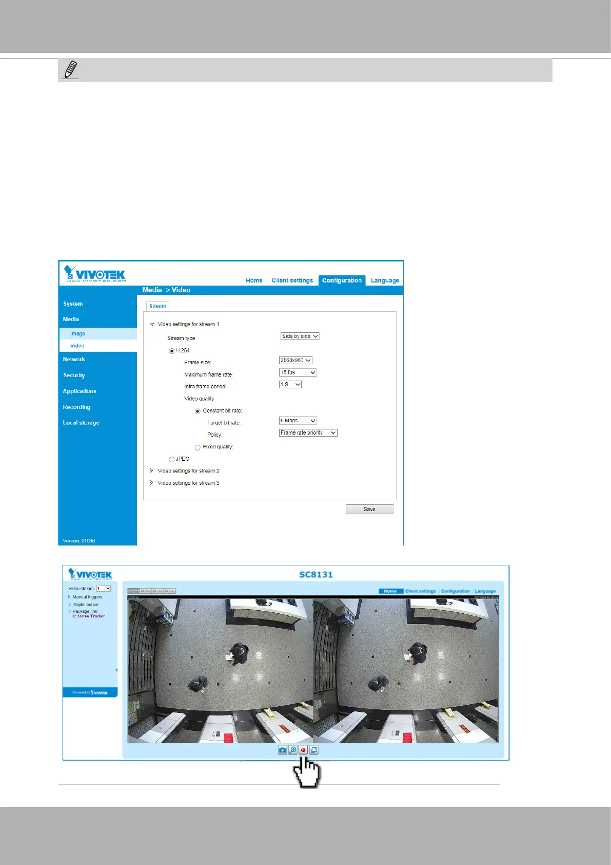for stream 1 is CBR, target bit rate 8Mb/s, at 30fps, frame rate priority. Use IE10 to