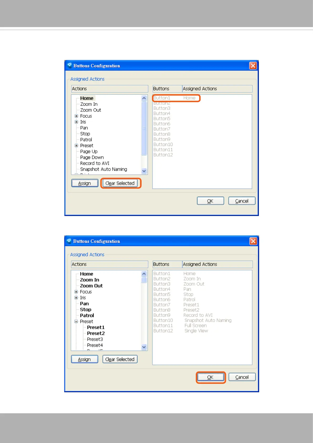 The Assigned Action will appear beside Button 1 in the right column as shown in the following
