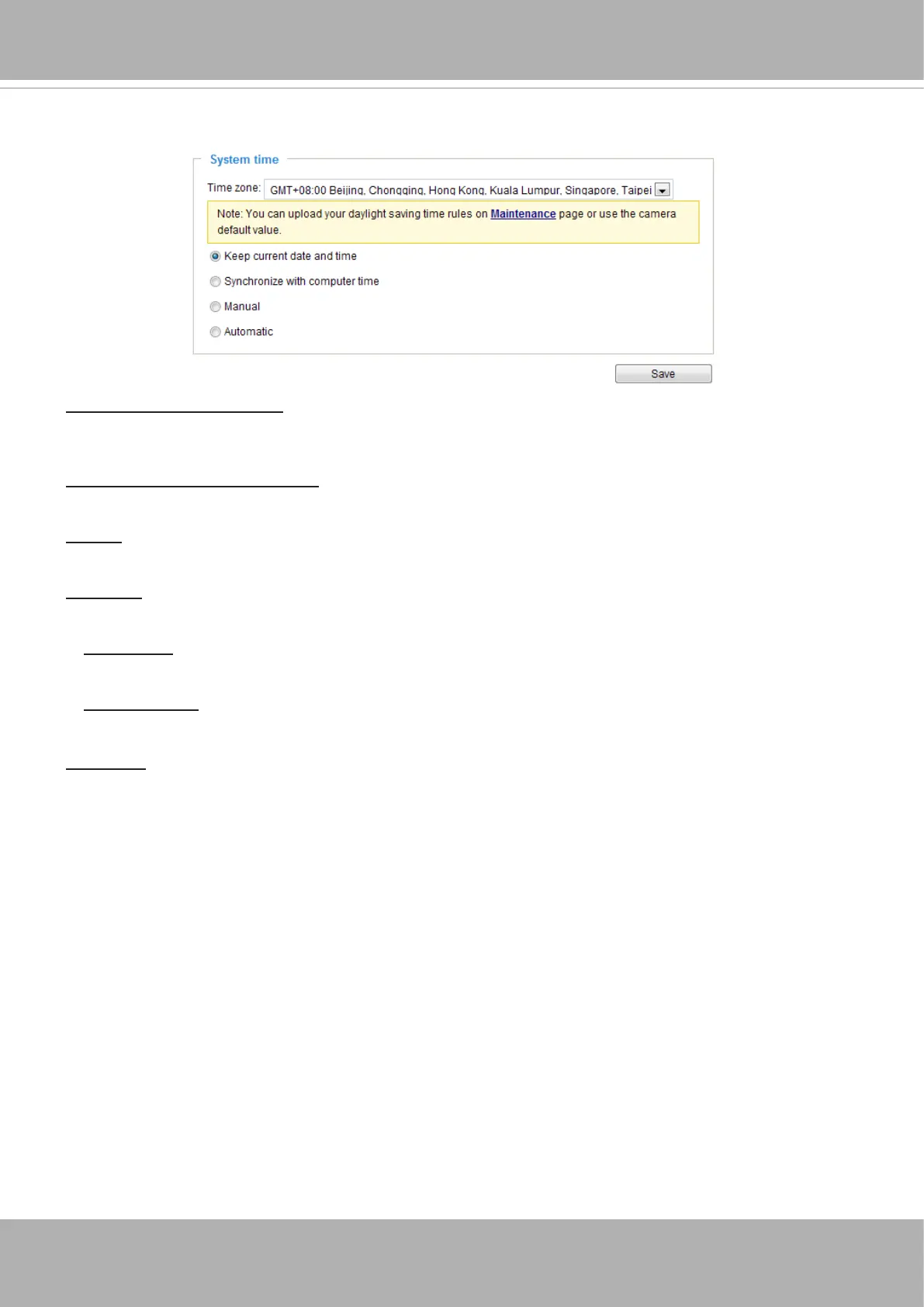 Manual: The administrator can enter the date and time manually. Note that the date and time format are