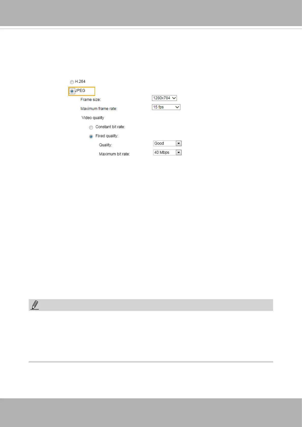 bandwidth consumed for transmitting motion jpegs. The conguration method is identical to that