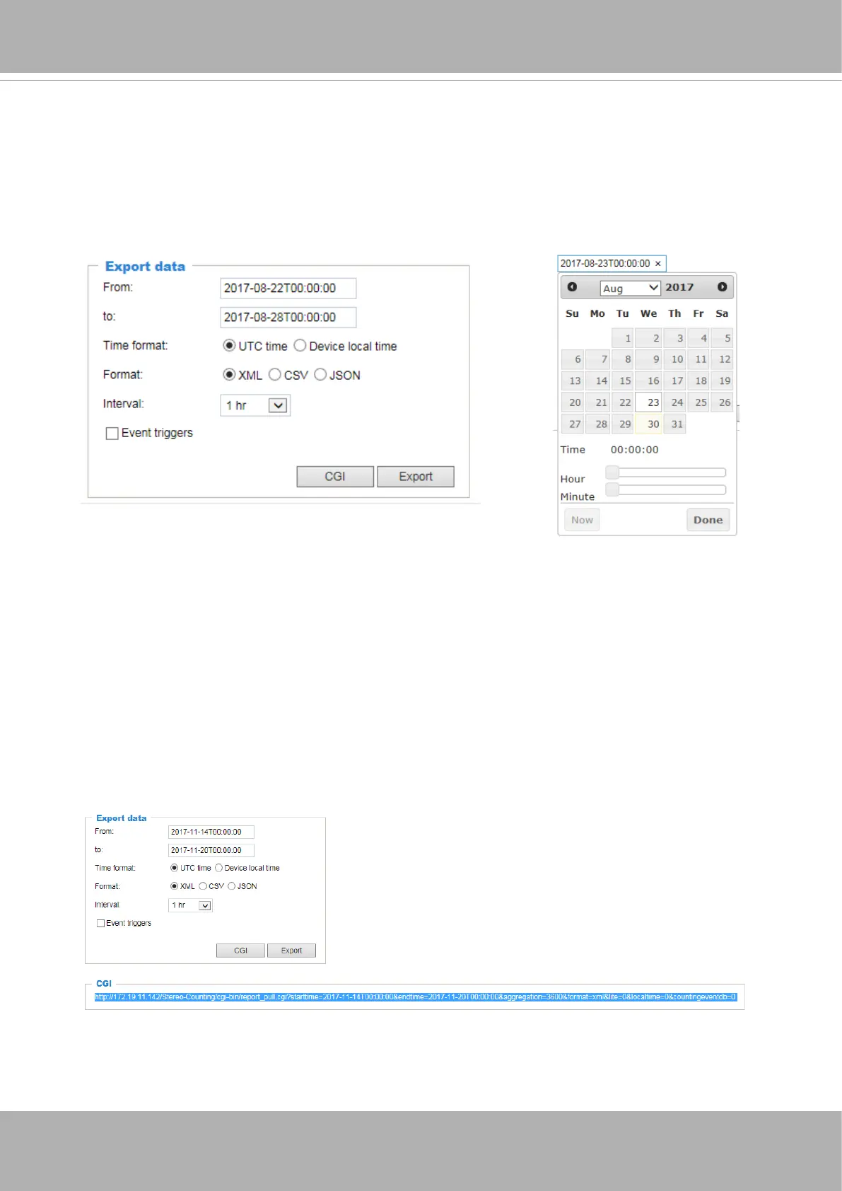 entries will be stored on the camera. Users can export the report using the XML, CSV, or