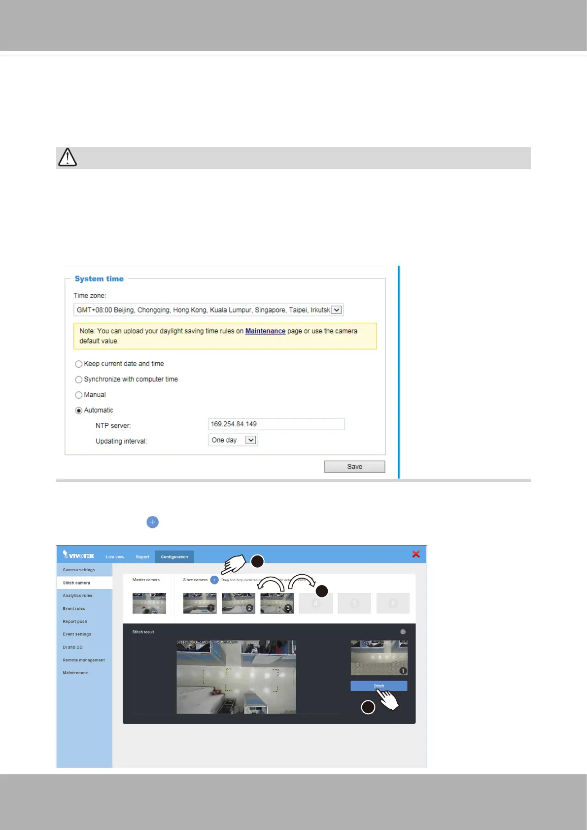It is highly recommended that all cameras be congured to be listening to an NTP (Network