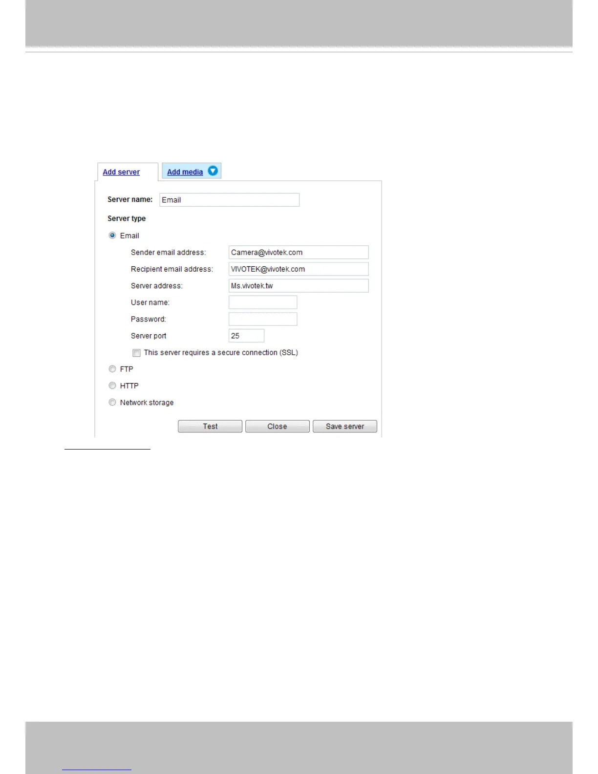 are sent when a trigger is activated. A total of 5 server settings can be congured.