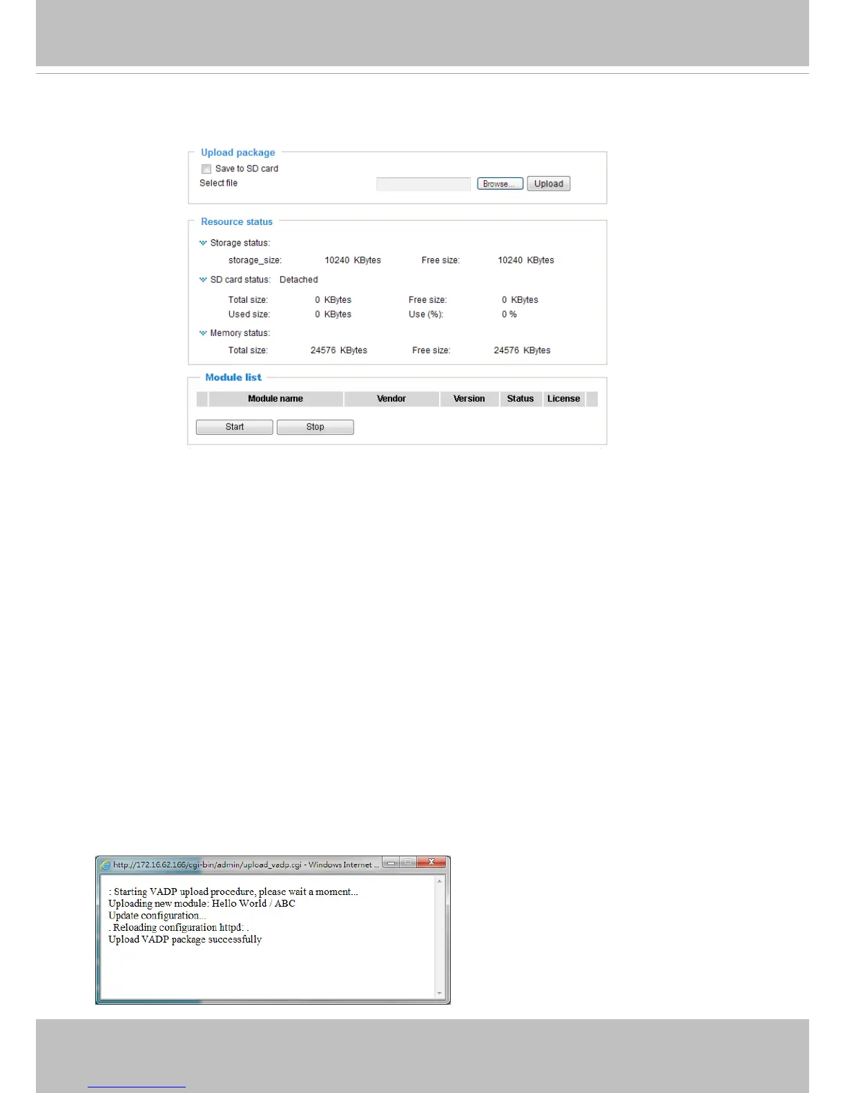 • Once the software package is successfully uploaded, the module conguration (vadp.xml)