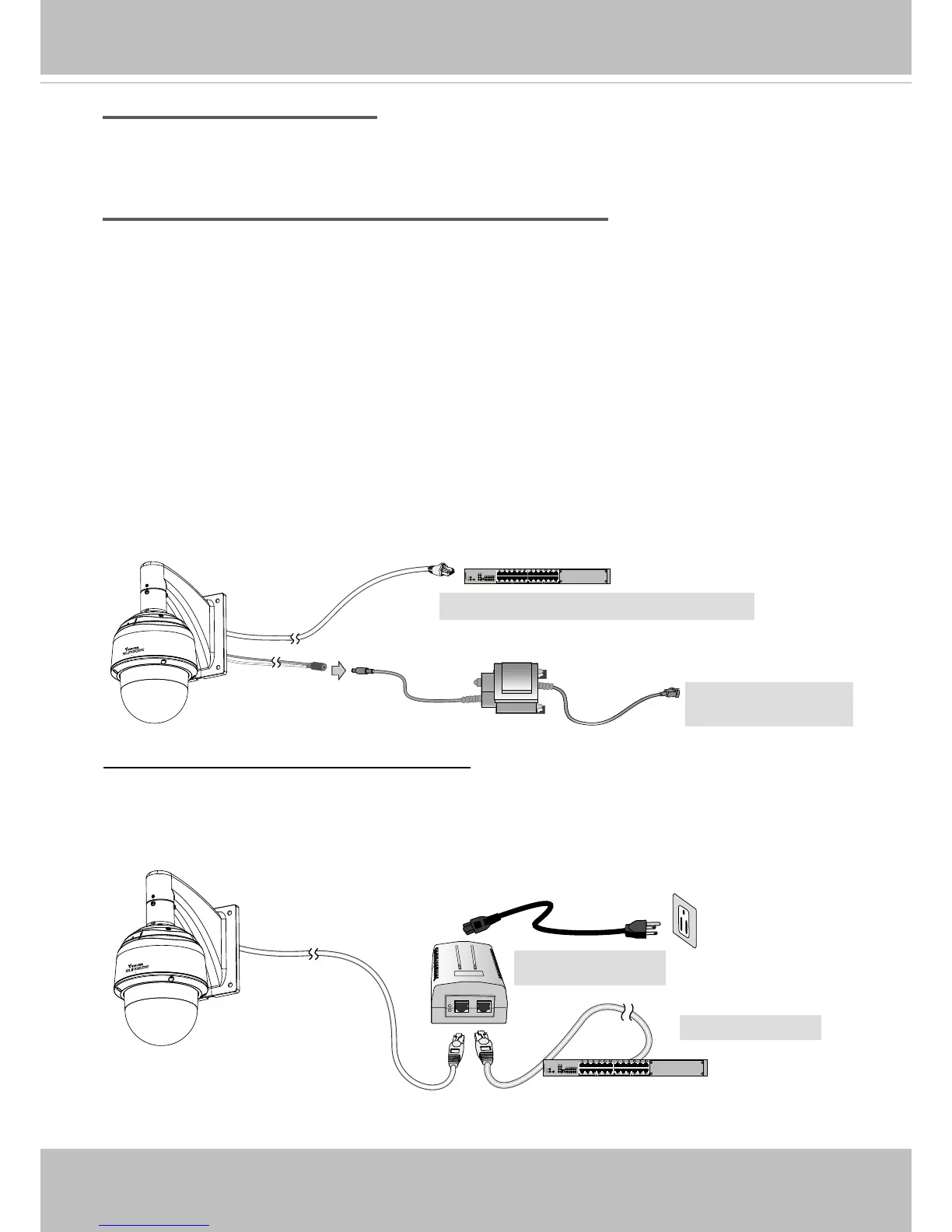 between the Network Camera and a non-PoE switch. Sufcient power is required for low tem-