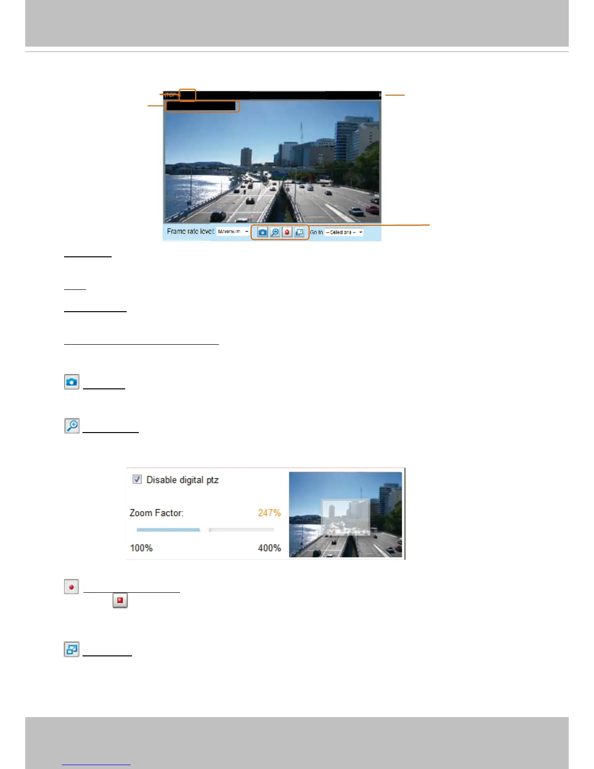 Snapshot: Click this button to capture and save still images. The captured images will be displayed