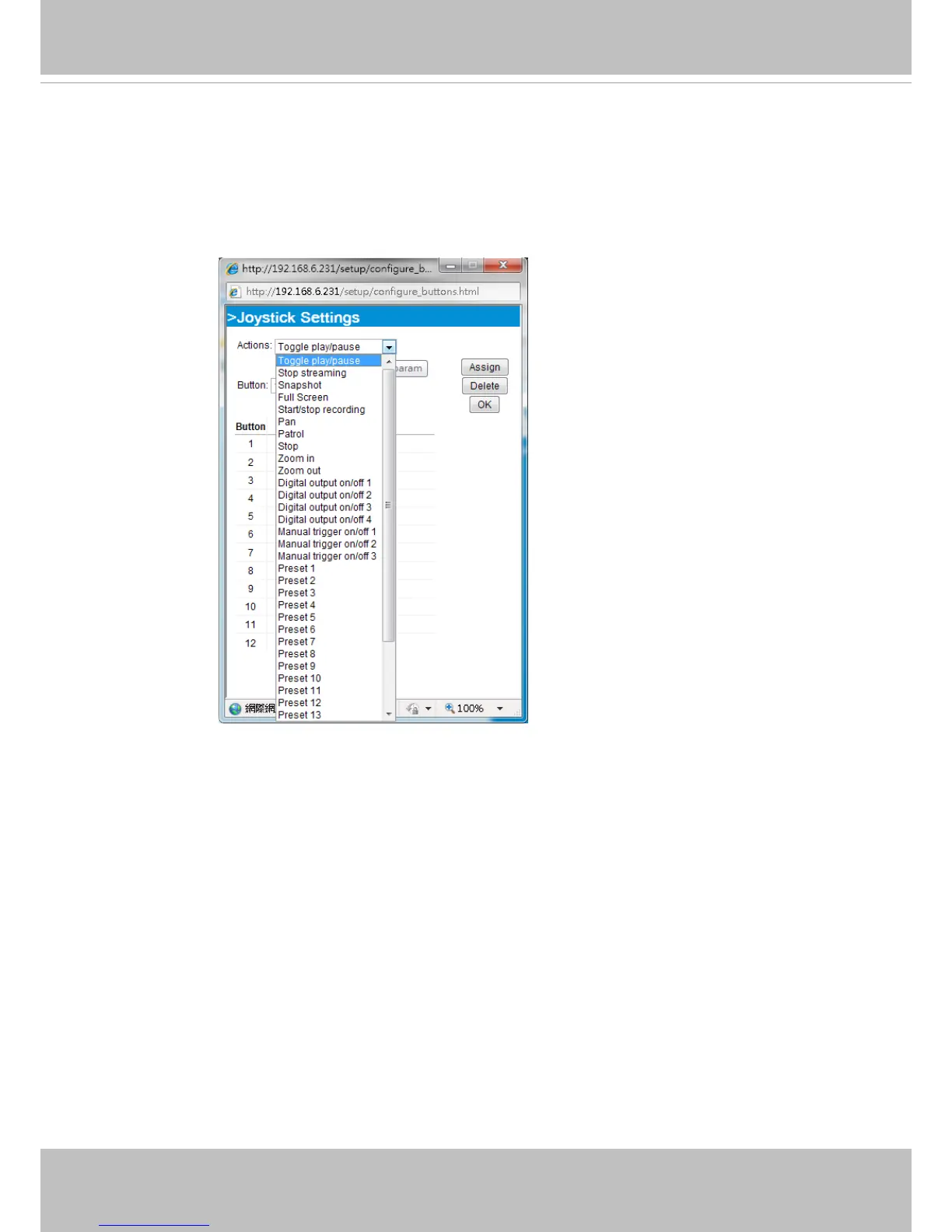 For example: Assign Preset 1 (move to preset 1 position) to Button 1.