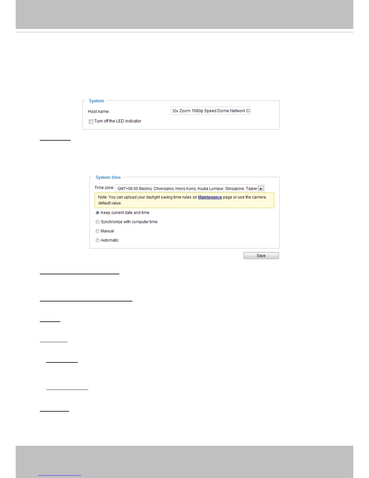 Host name: Enter a desired name for the Network Camera. The text will be displayed at the top of the