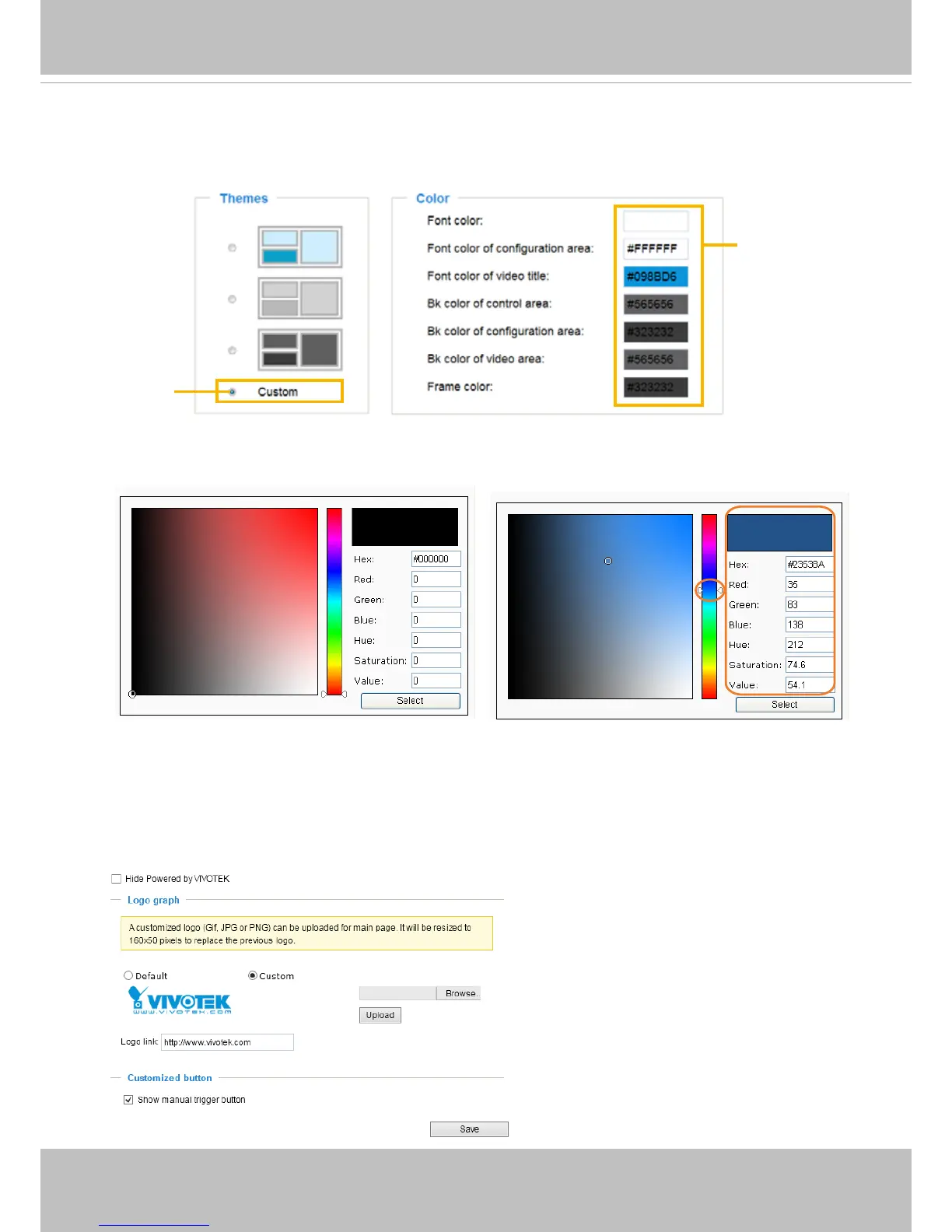 VIVOTEK’s company logo, the embedded website address or the slogan “Powered by VIVOTEK.“ When