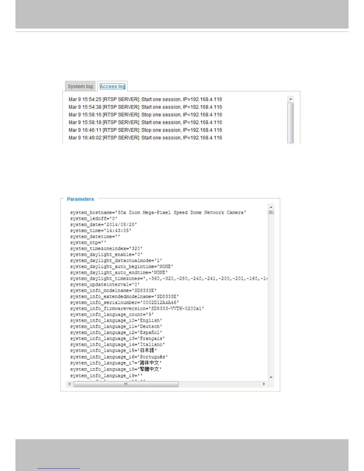 administrators) in a chronological order. The access log is stored in the Network Camera’s buffer area