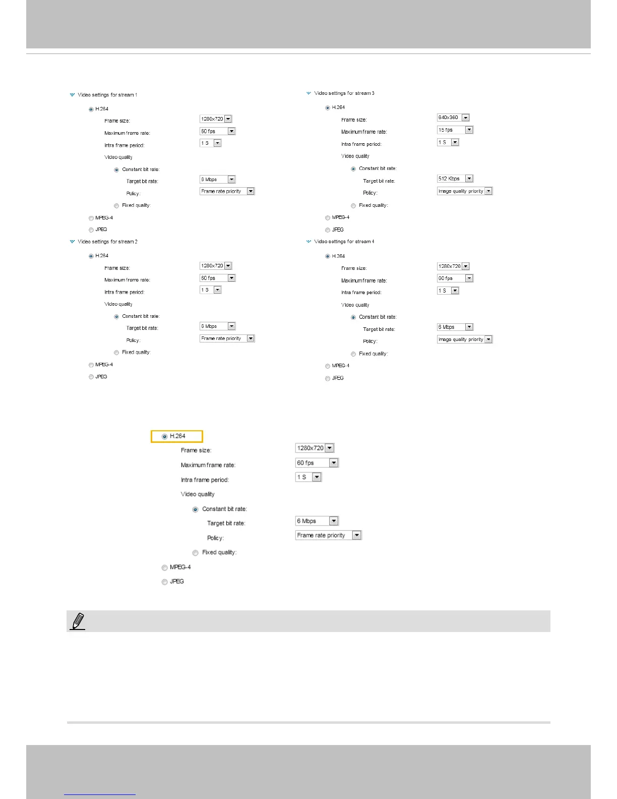 Codec) for real-time viewing. If the H.264 / MPEG-4 mode is selected, the video is streamed via RTSP