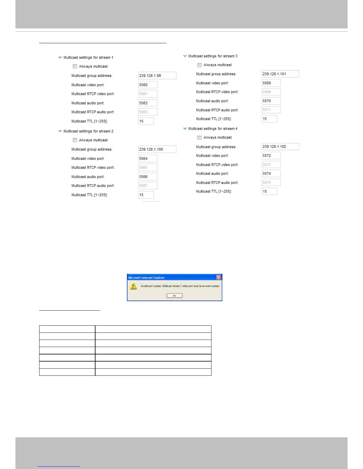 If the multicast RTP video ports are incorrectly assigned, the following warning message will be