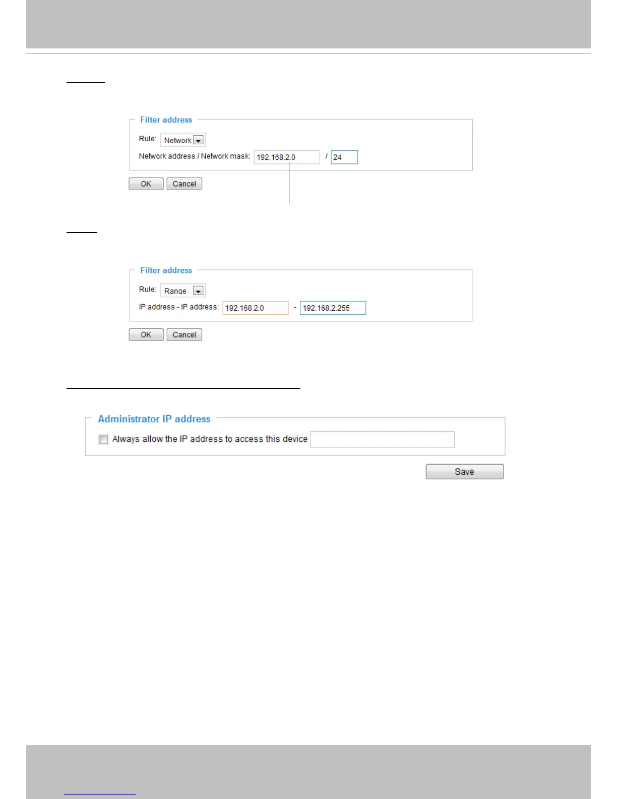 IP address in this eld to make sure the Administrator can always connect to the device.