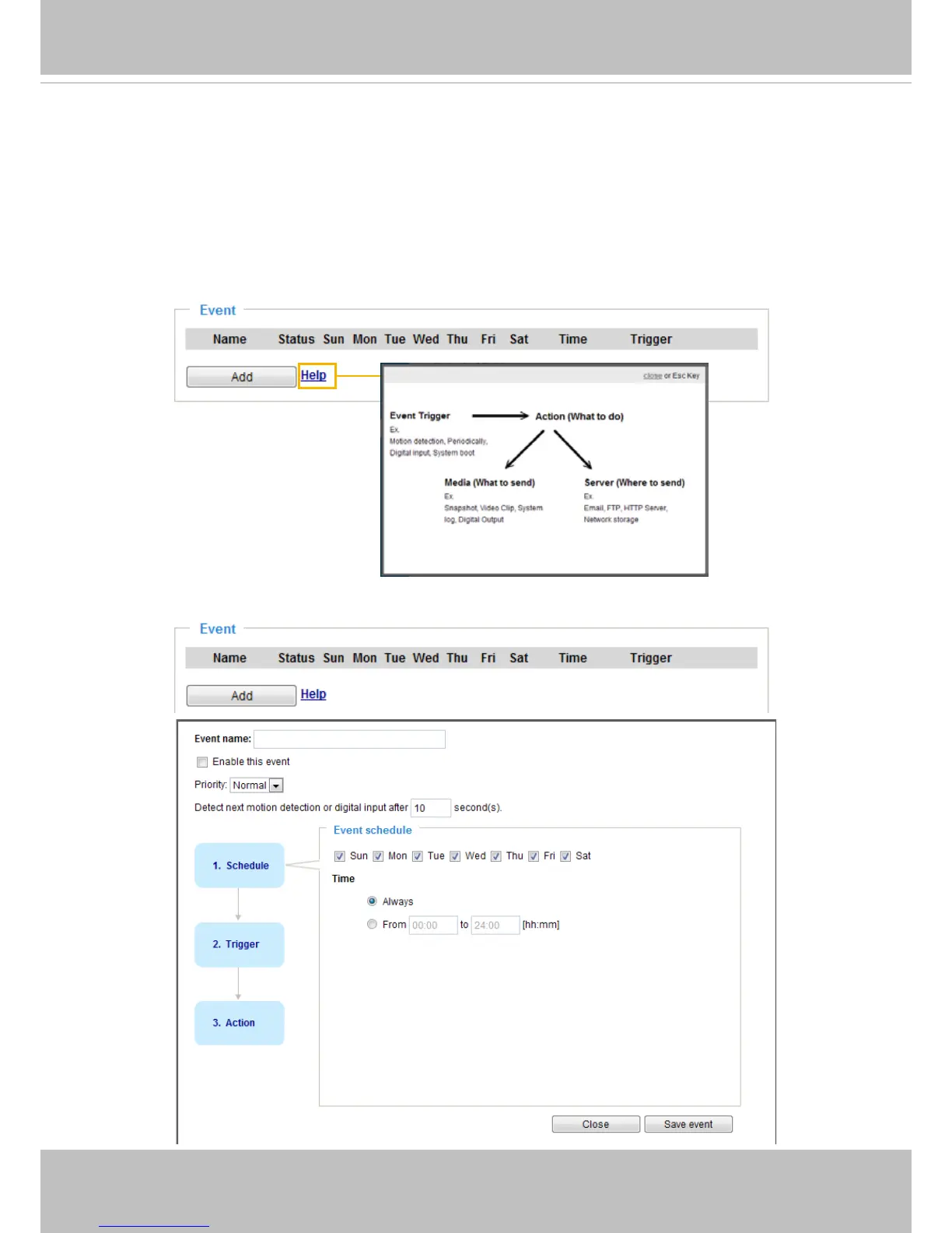 sources, such as motion detection or external digital input devices. When an event is triggered,