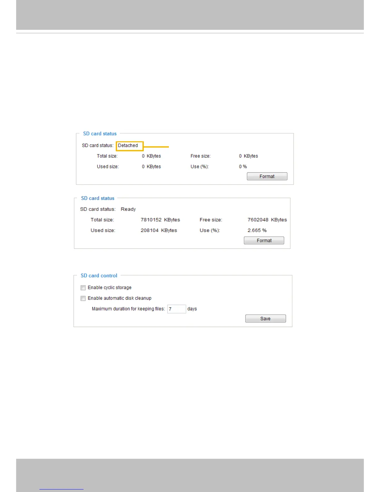 For example, if you enter “7 days”, the recorded les will be stored on the SD card for 7 days.