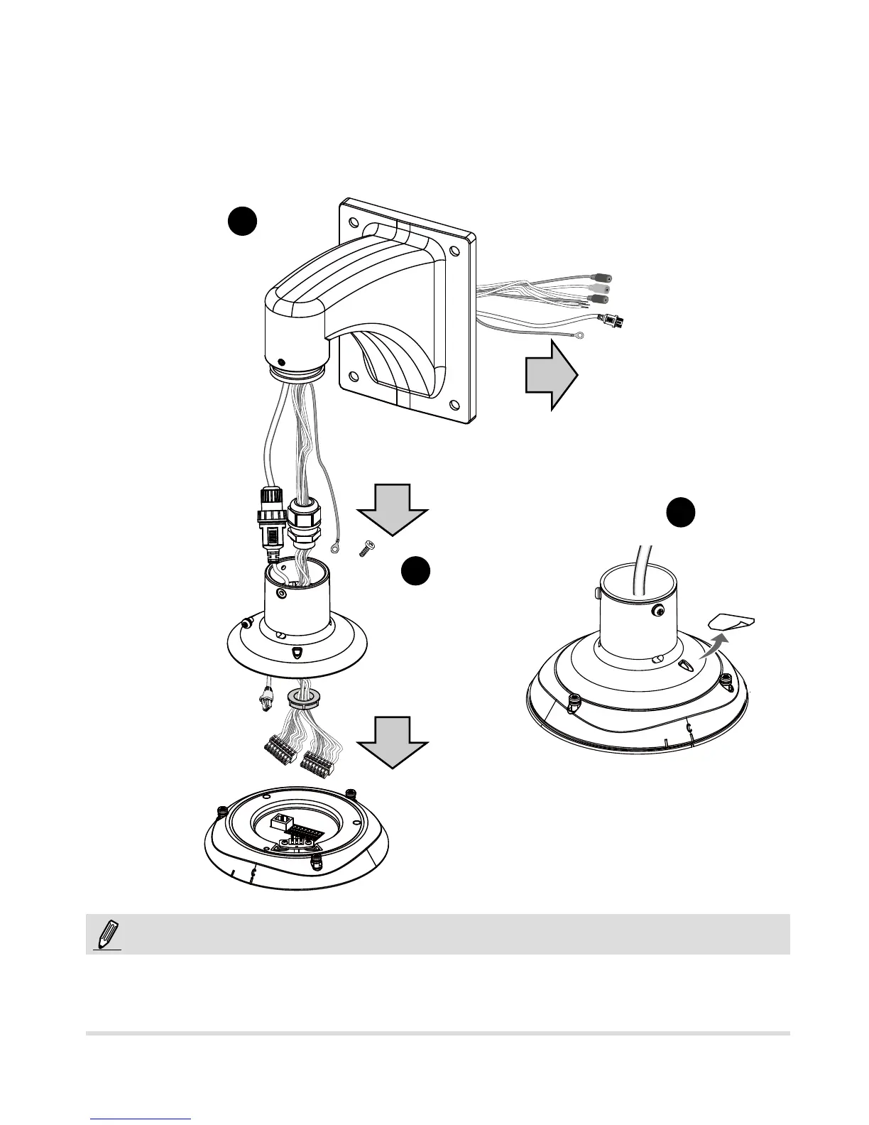 2. Przeprowadź kabel Ethernetu i przewody IO przez wspornik oraz otwór w przykrywce kolumny do
