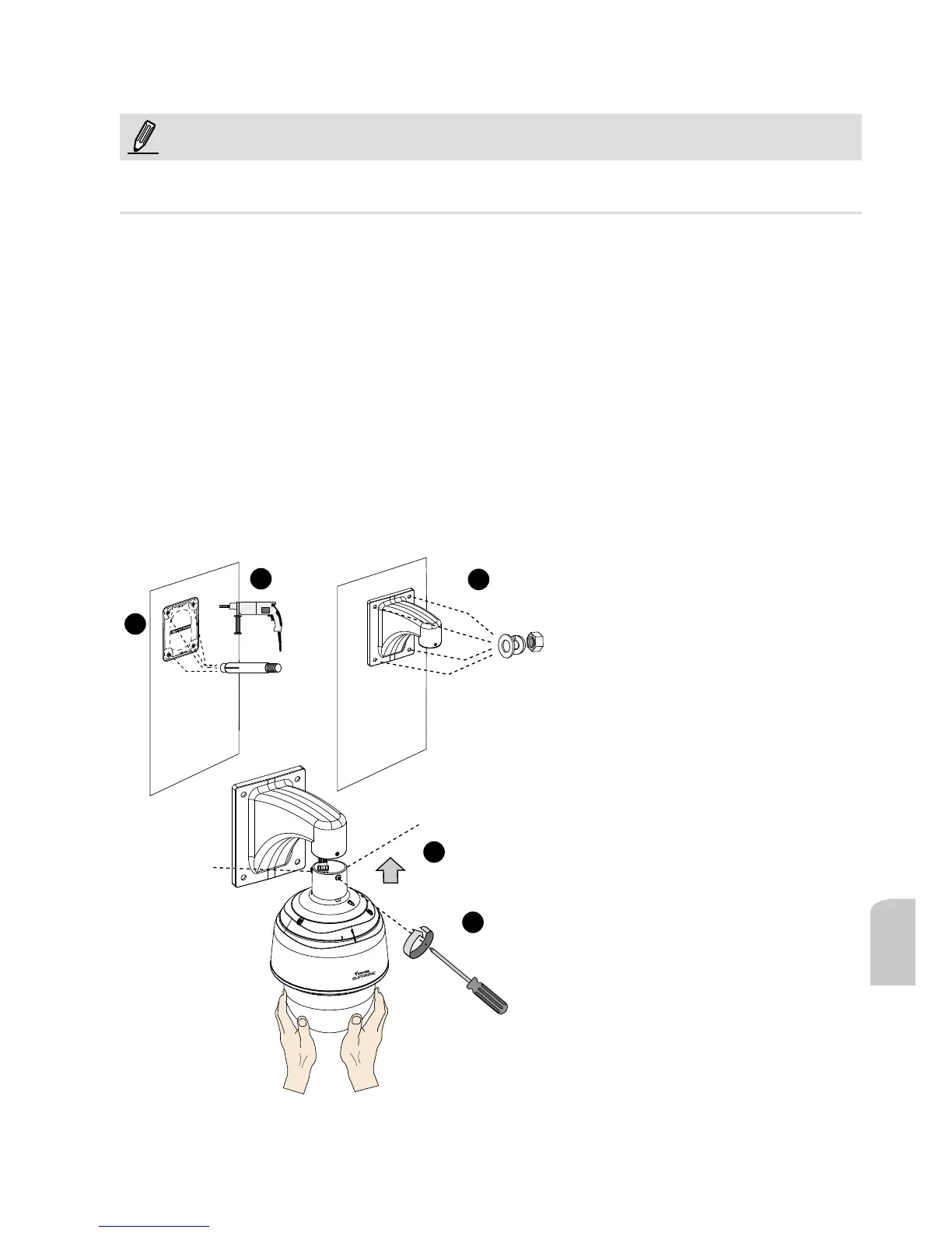 передачи вибраций к камере. Прикрепите монтажный шаблон к стене.
