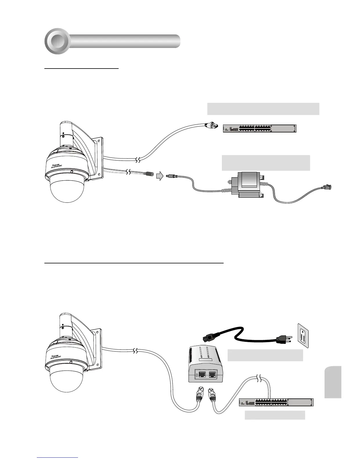 Při použití switche bez PoE použijte k propojení s kamerou High PoE injektor (není součástí dodávky)