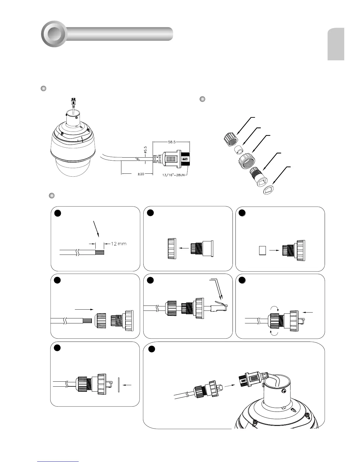 連接乙太網路纜線與RJ45纜線,並將接頭鎖緊。