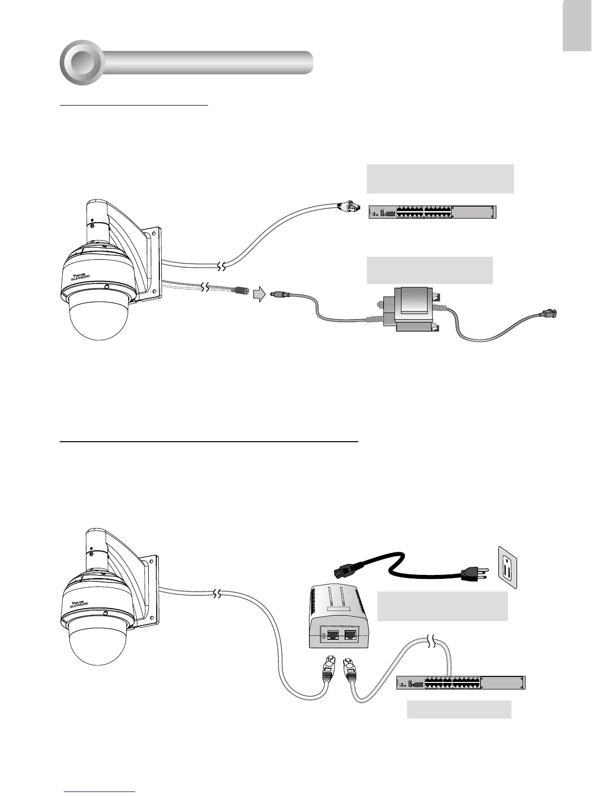 mellem Netværkskameraet og en non-PoE kontakt. Tilstrækkelig strøm er nødvendig ved lavtemperatur-