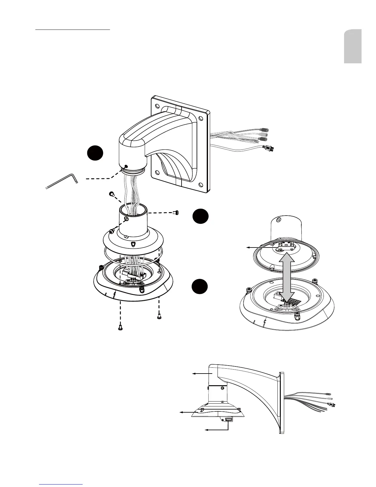 1. 將密封塞進球罩頂蓋的凹槽色小螺絲(M4 x 8)將介接環連上半圓形上蓋請注
