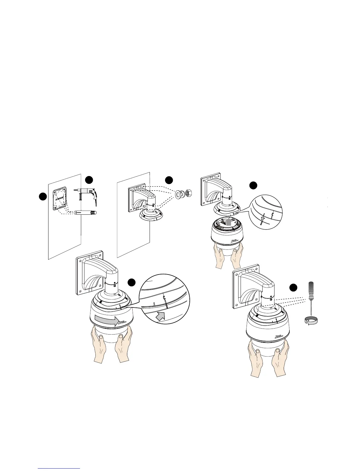 3. 用四組鎖緊墊圈及螺帽將安裝支架固定在牆上。
