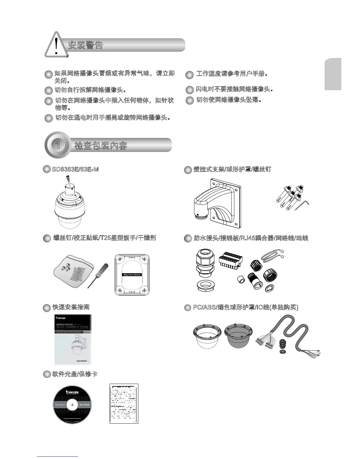 壁挂式支架/球形护罩/螺丝钉SD8363E/63E-M