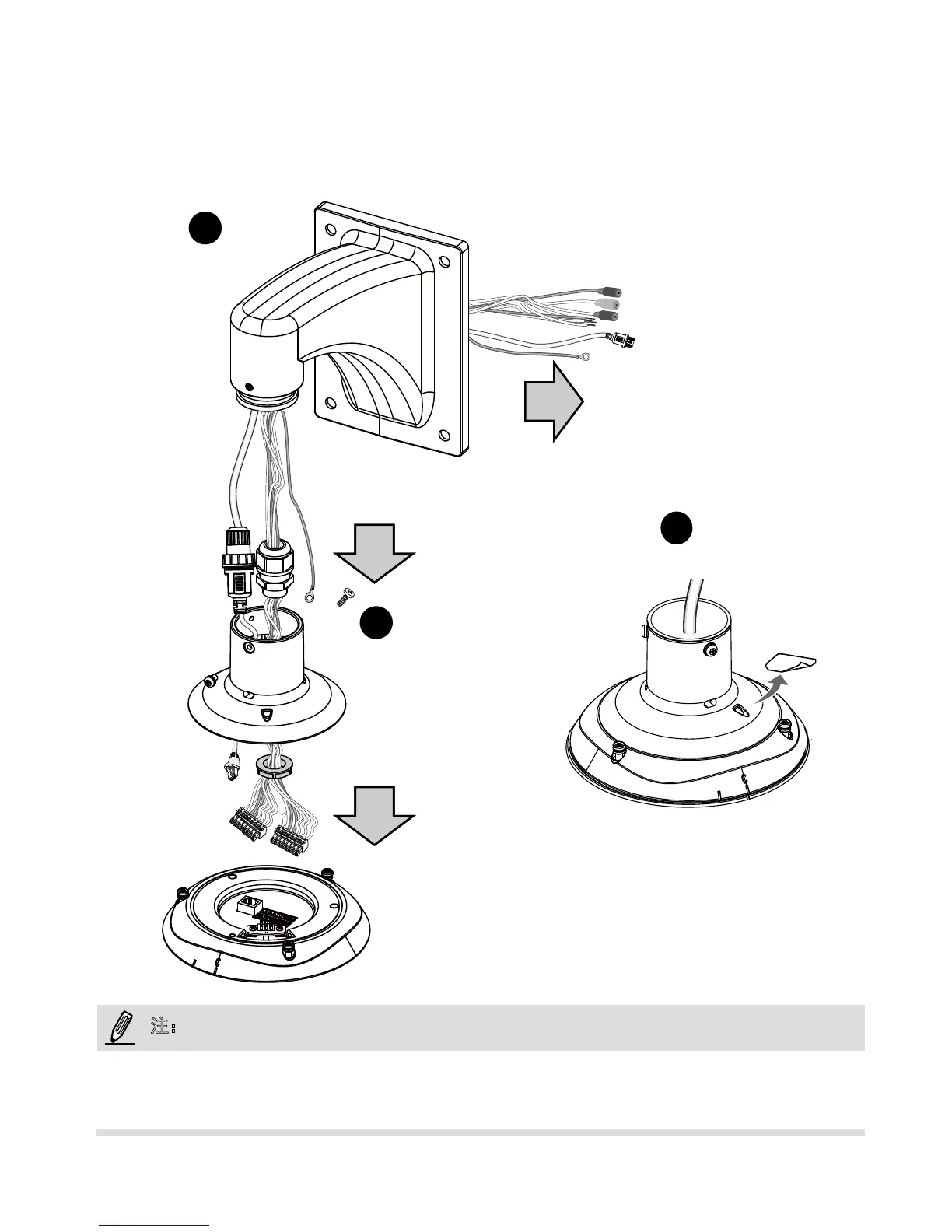 2. 太网电缆和IO缆穿过固定支架球形护罩的开部分橡胶密封插头插入