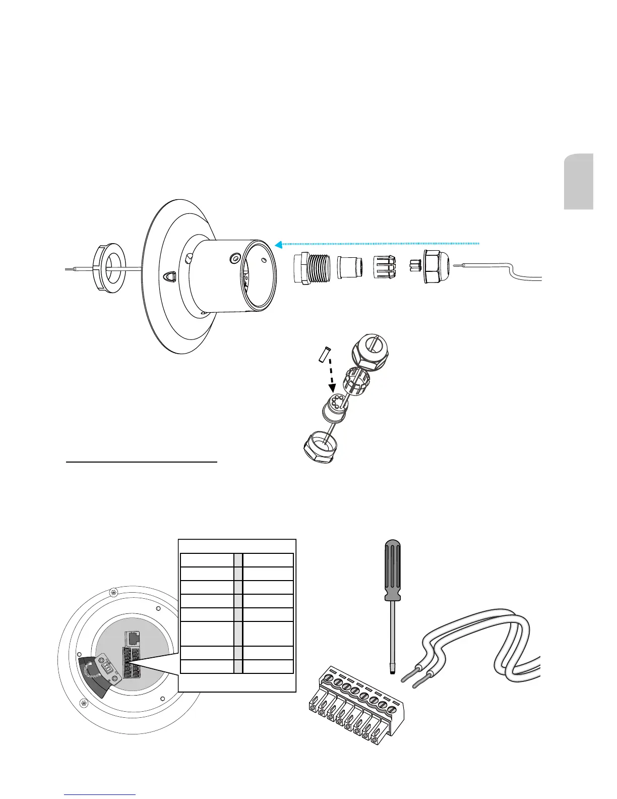 1. 小型マイナスドライバを使用して、IO配線を同梱の端