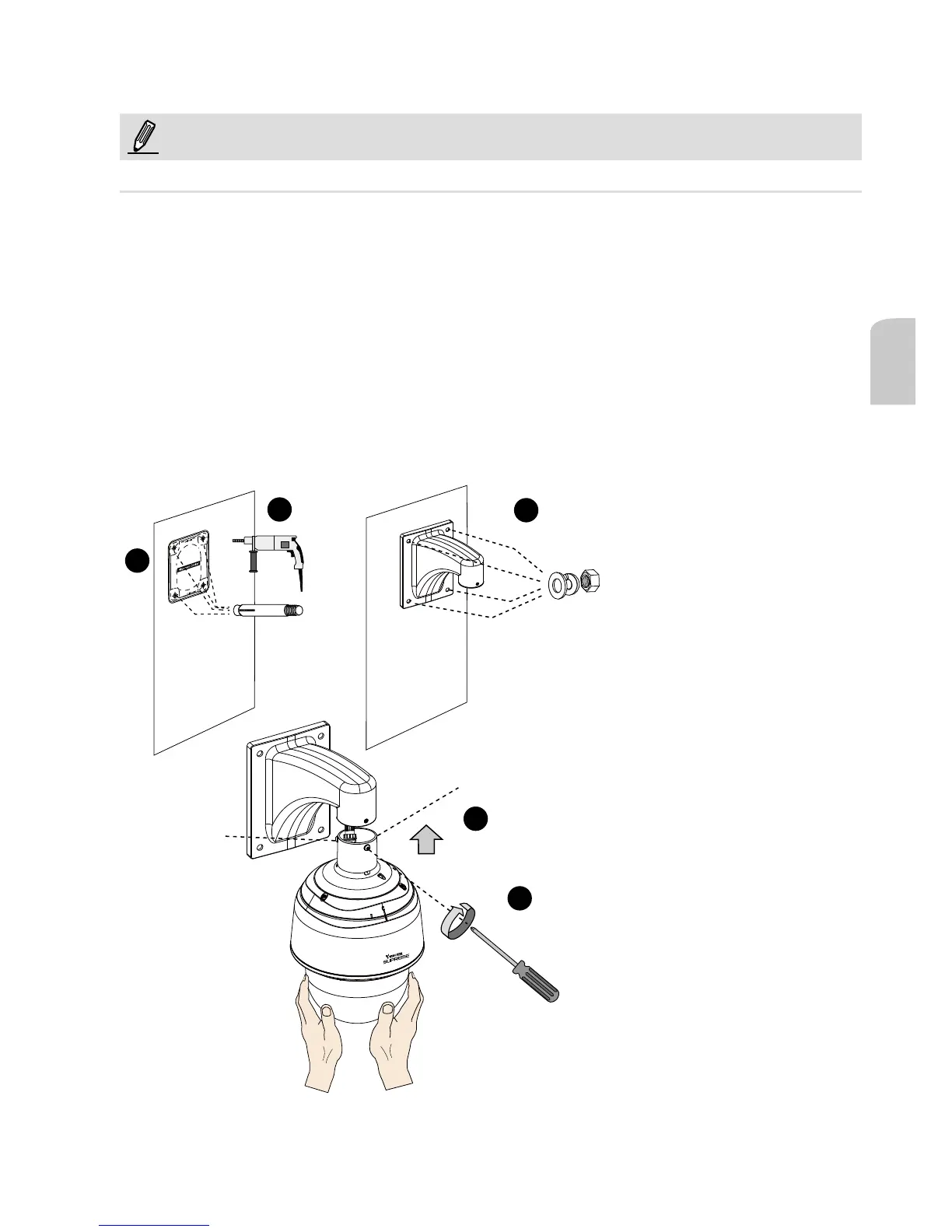 1. La caméra pèse 3.66 kg. Choisir un endroit rigide de support pour empêcher la vibration à la