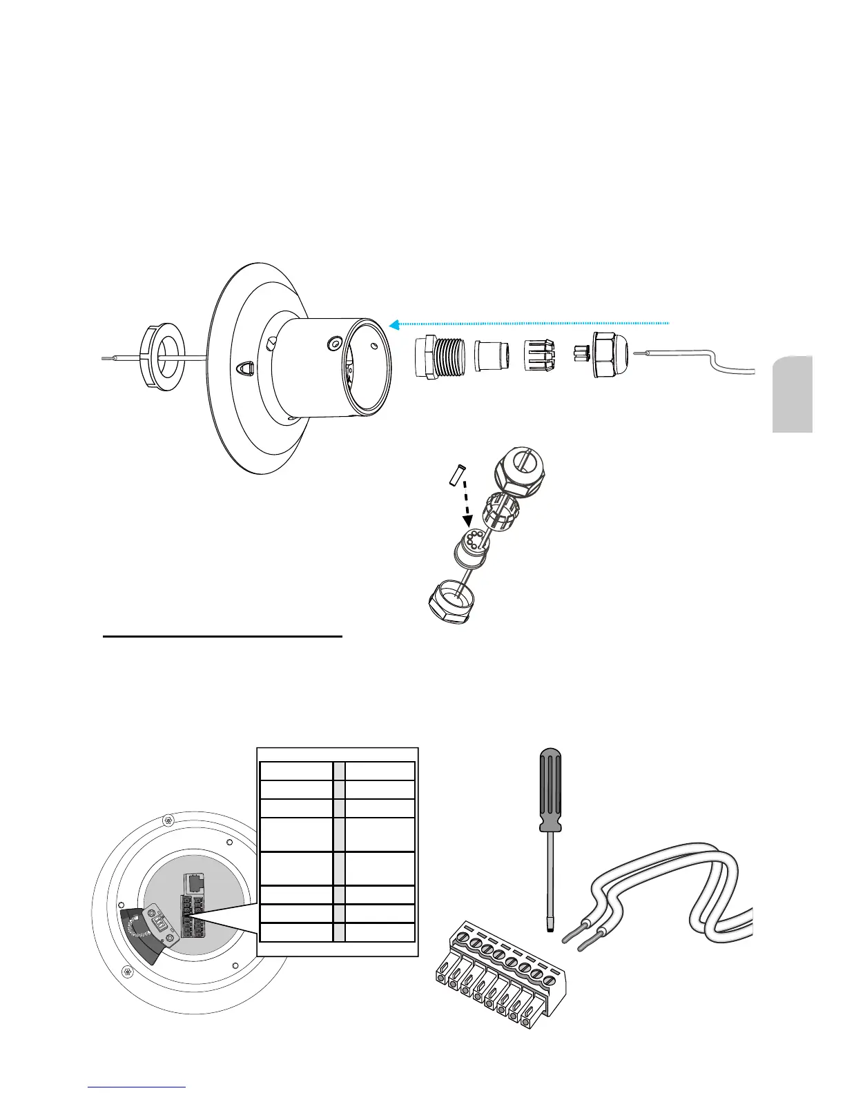 4. Si tiene dispositivos externos, como sensores y alarmas, introduzca los cables IO a través del