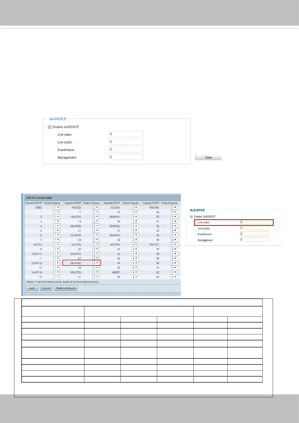 Below are the setting options of DSCP (DiffServ Codepoint). Specify the DSCP value for each application