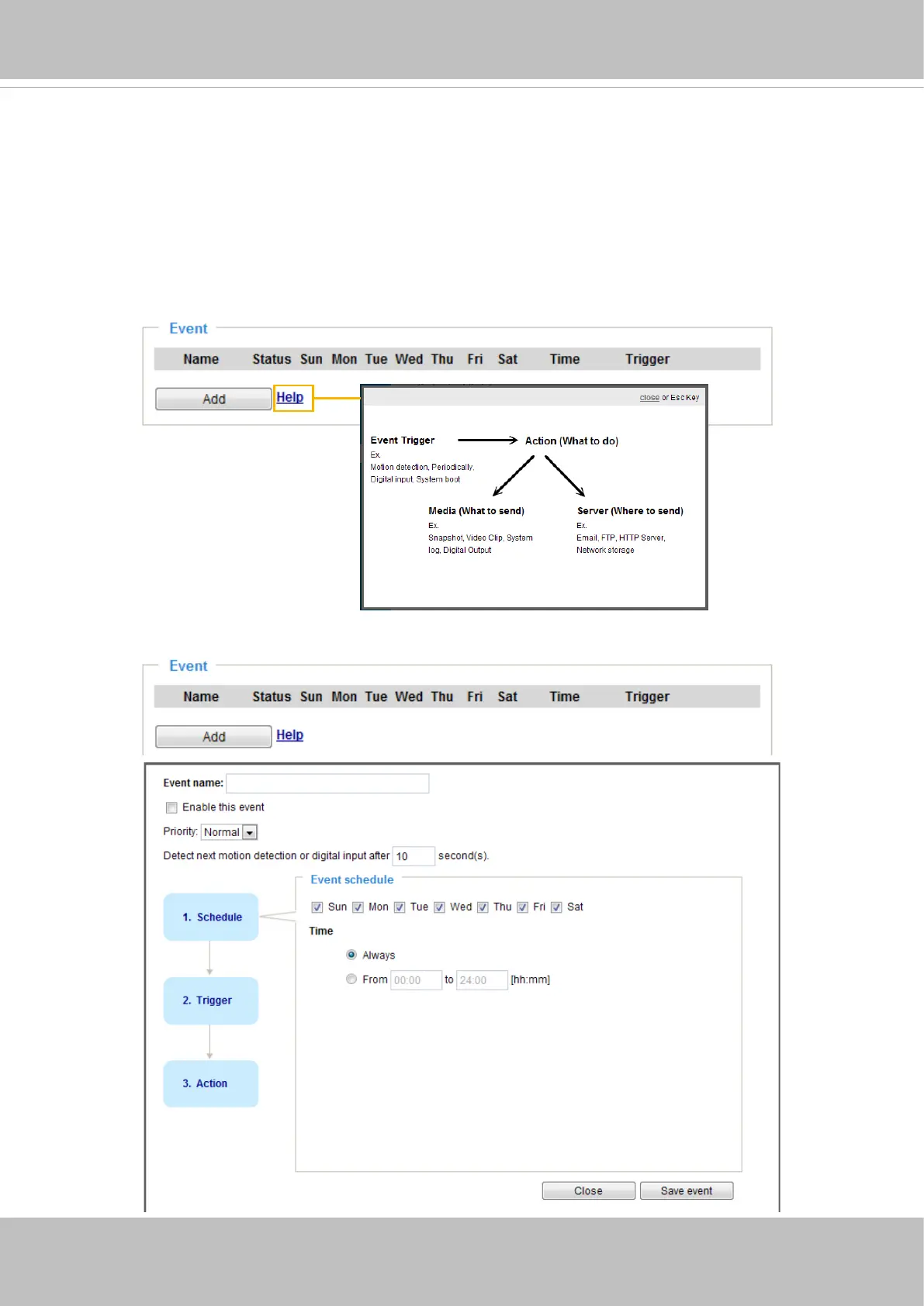 sources, such as motion detection or external digital input devices. When an event is triggered,