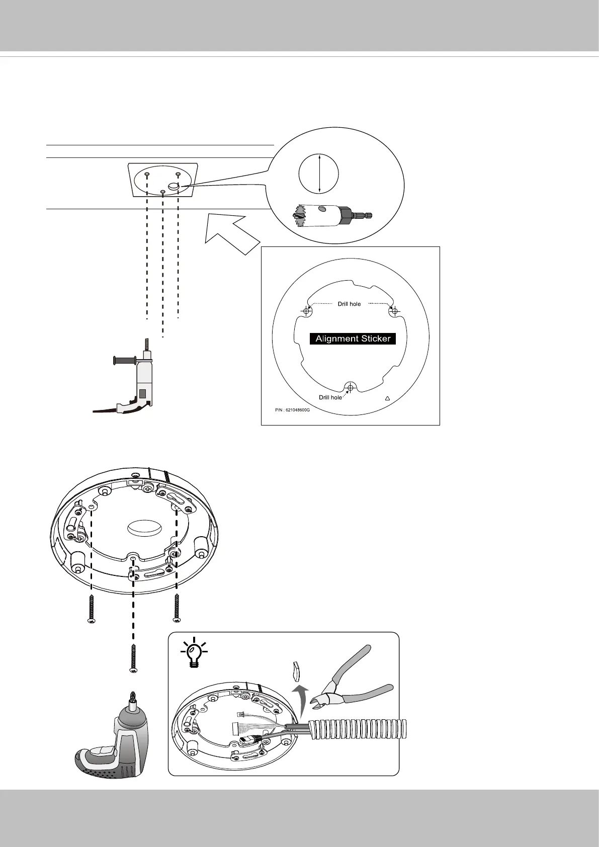 A-1. Attach the alignment sticker to a preferred location. Drill holes for the mounting screws. If