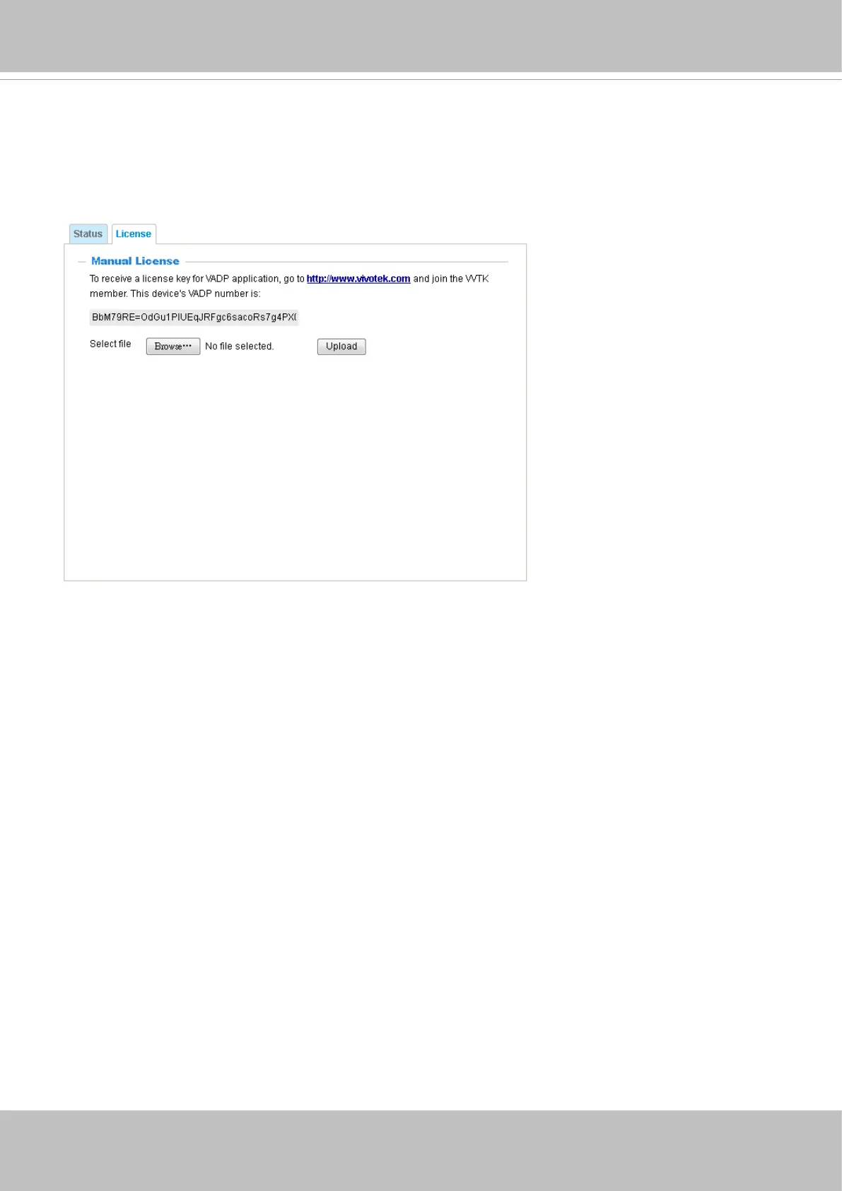 On the License page, register and activate the license for using VIVOTEK's VADP modules. You