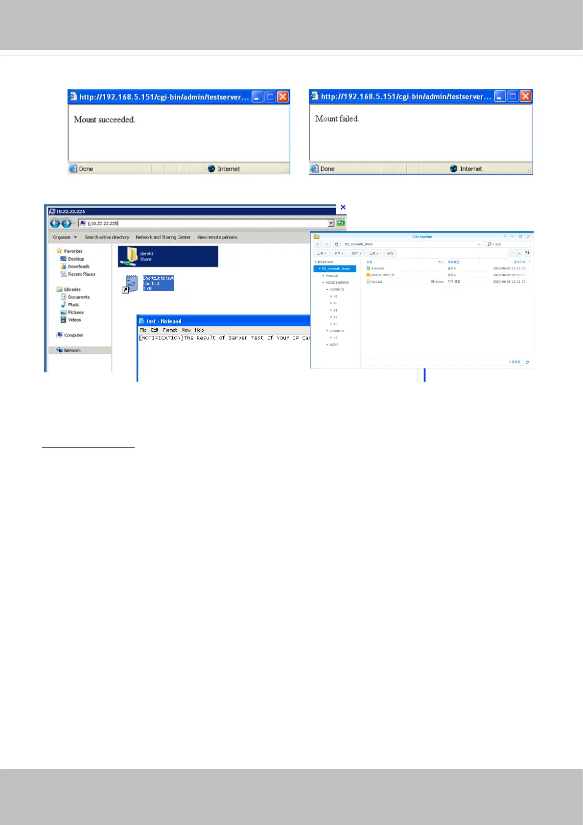 2. Click Test to check the setting. The result will be shown in the pop-up window.