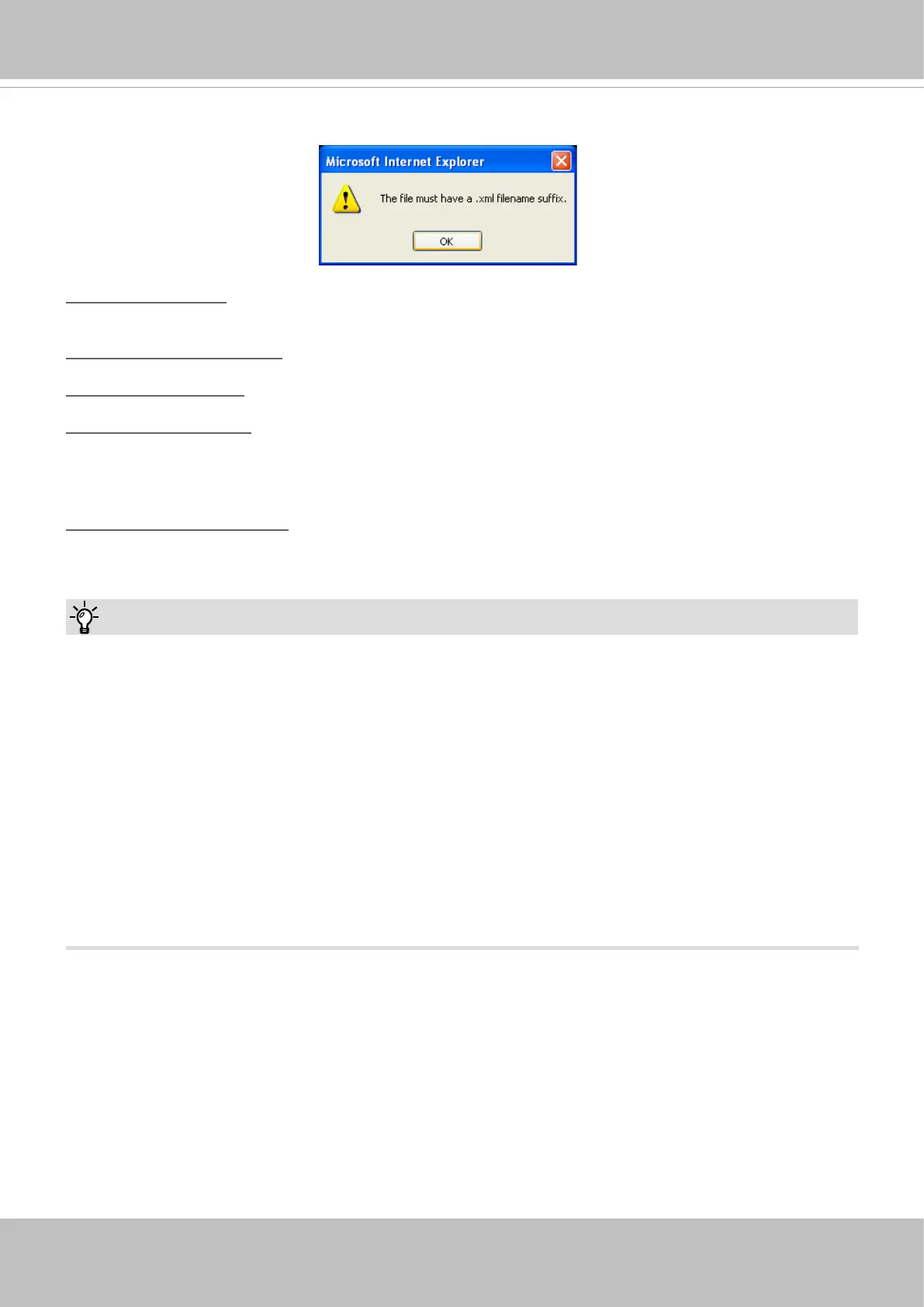 The following message is displayed when attempting to upload an incorrect le format.