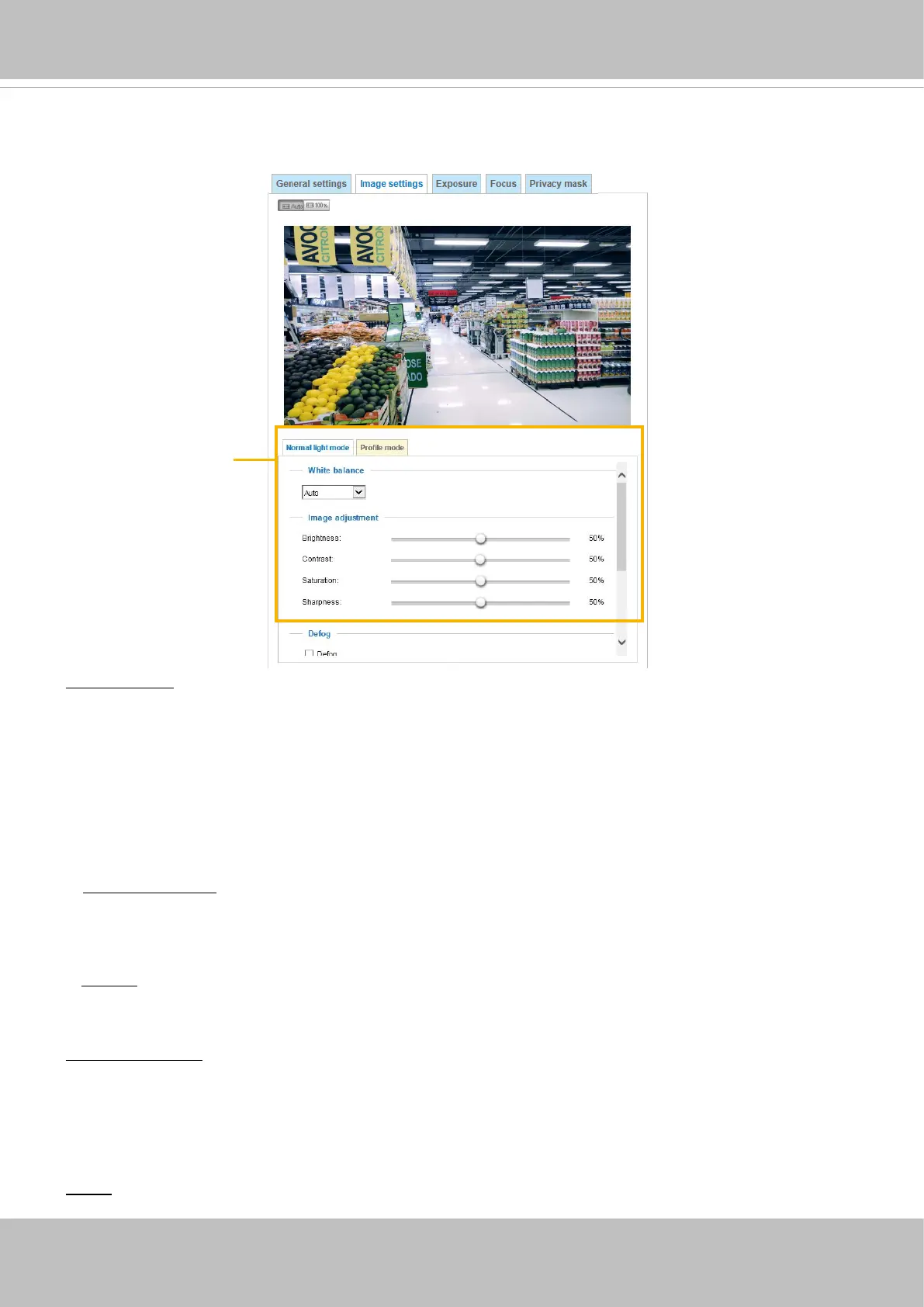 ■ Saturation: Adjust the image saturation level, which ranges from 0% to 100%.