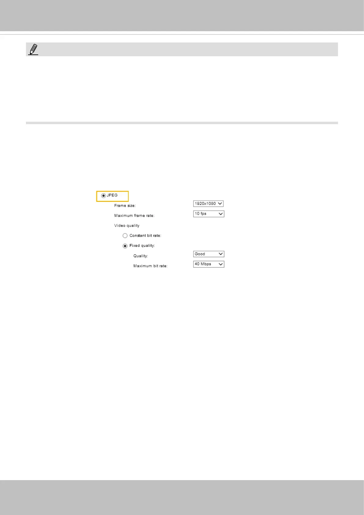 consumed for transmitting motion jpegs. The conguration method is identical to that for H.264.