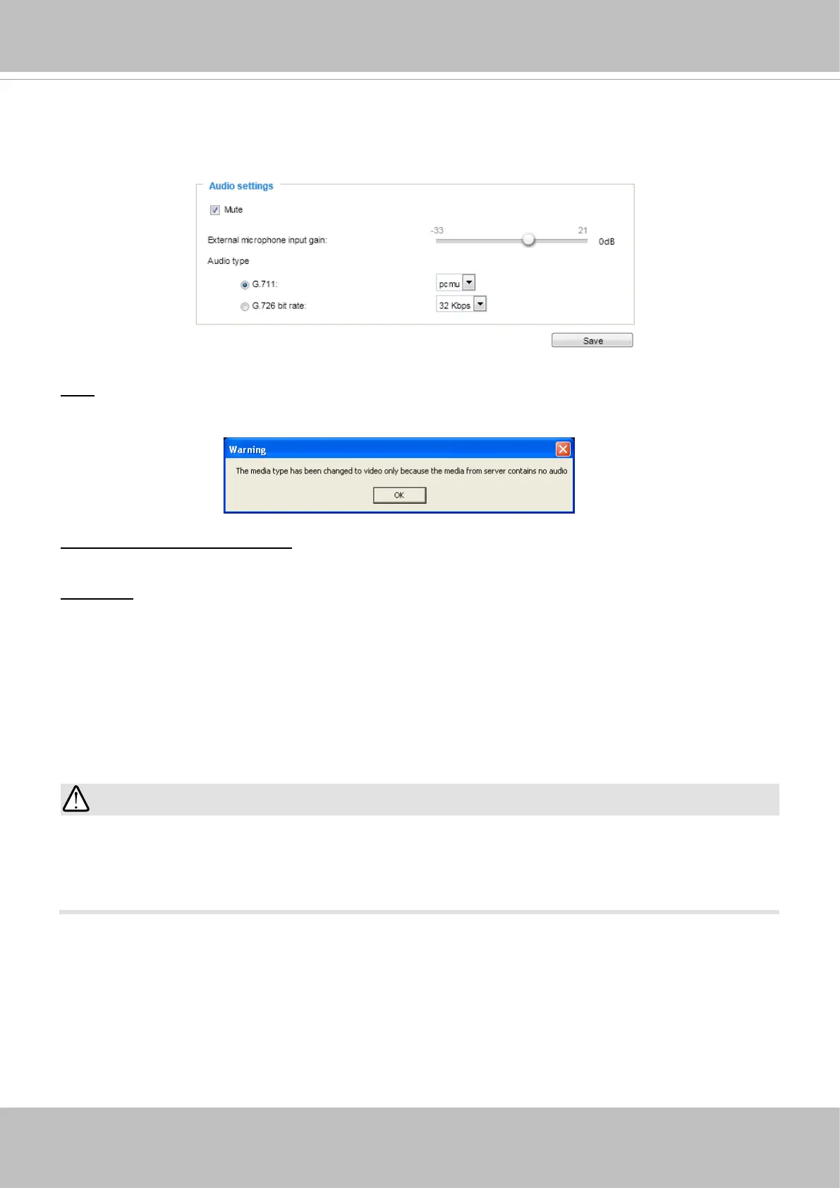Mute: Select this option to disable audio transmission from the Network Camera to all clients. Note that