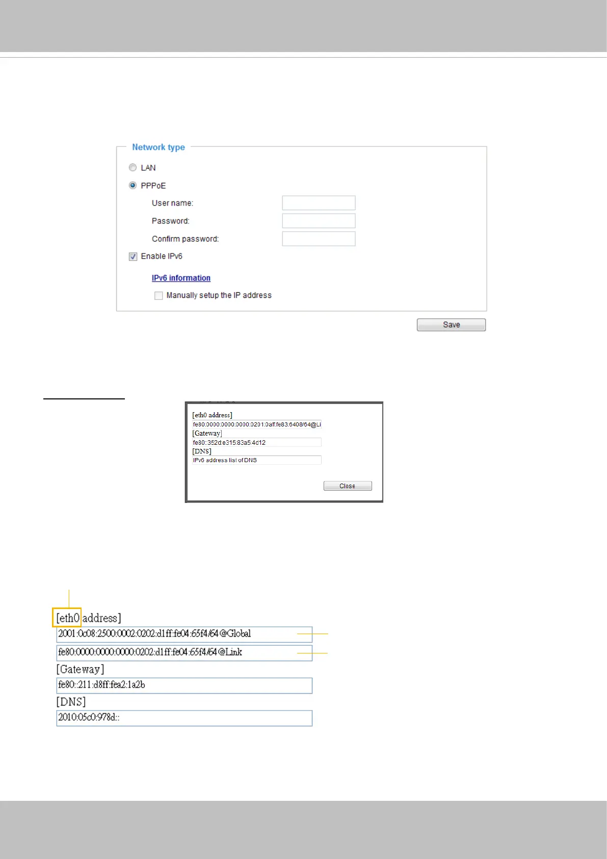 IPv6 Information: Click this button to obtain the IPv6 information as shown below.