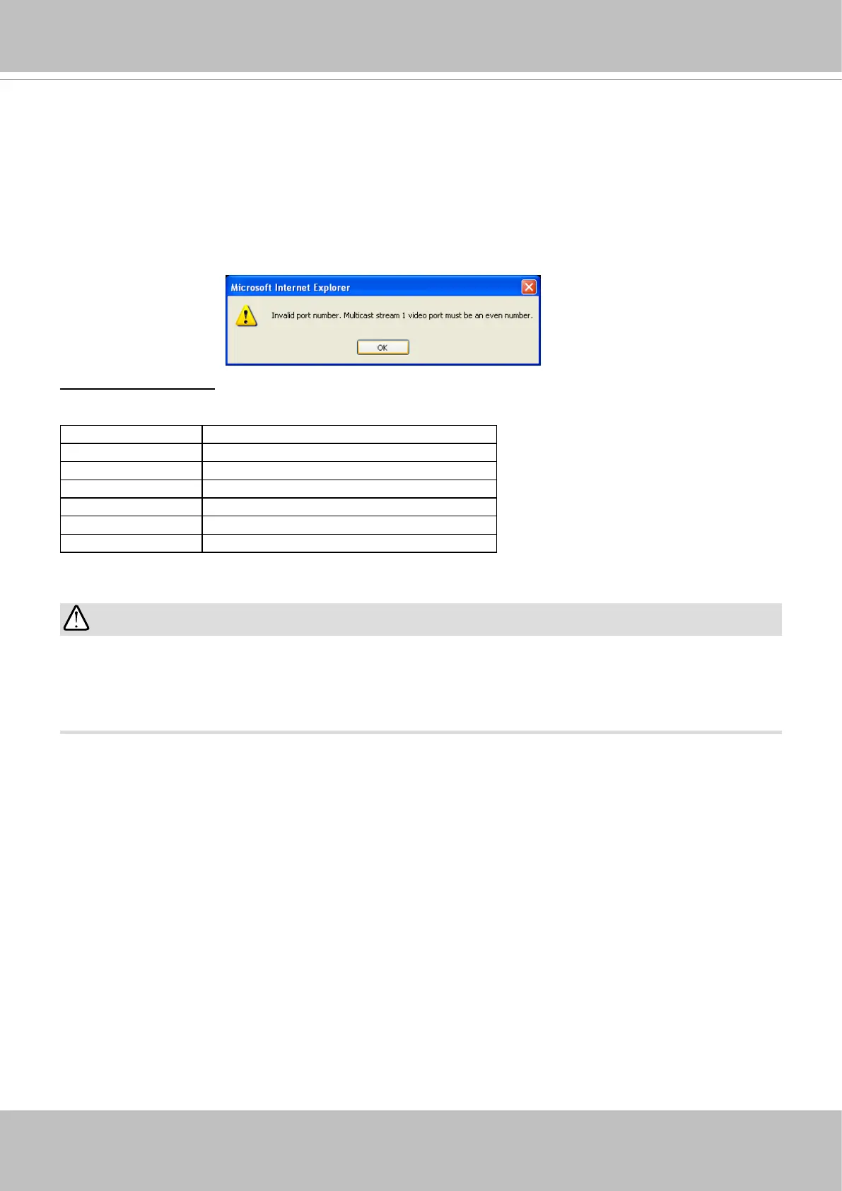 If the multicast RTP video ports are incorrectly assigned, the following warning message will be