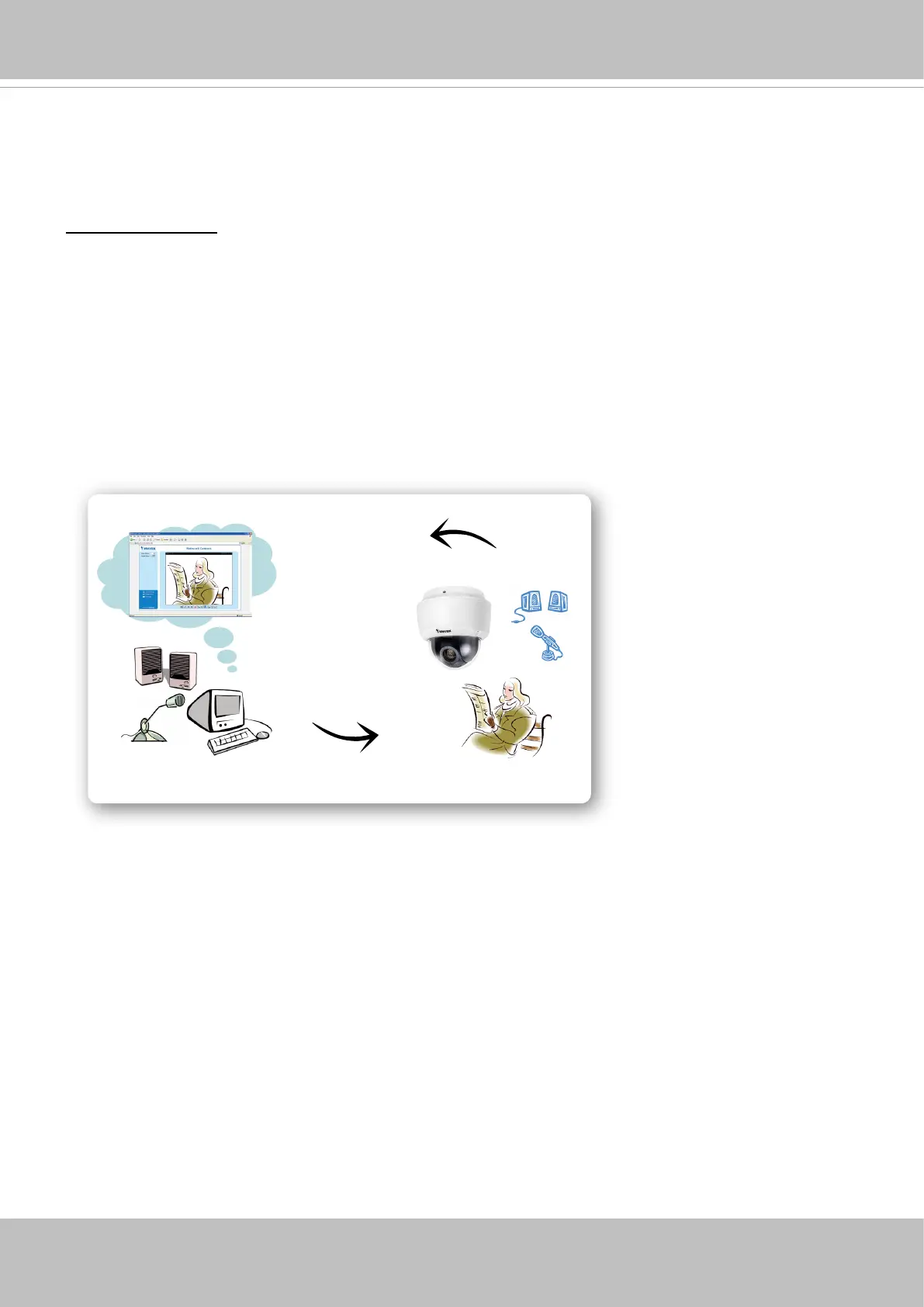The Network Camera supports two way audio communication so that operators can transmit and receive