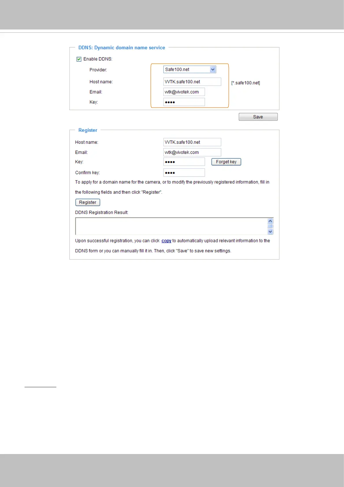 DDNS Registration Result column. Enter ns1.safe100.net as the Server name.